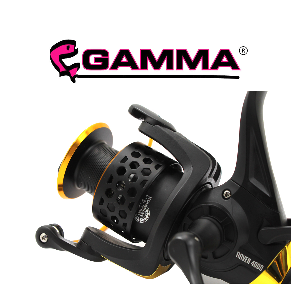 El Reel Gamma Raven es un reel especialmente diseñado para carpfishig con un sistema de freno doble frontal y de cola, con tecla de liberación de carretel, lo que lo hace el reel ideal para la pesca de Dorados, Surubi y Pati gigante con equipos de frontal, ya que permite la liberación de línea para la corrida del pez permitiendo con solo mover la manija que este trabe y accione el freno real del reel, de manera practica y cómoda para el pescador